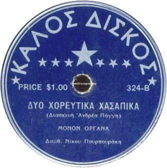 – "Dyo choreftika chasapika" [medley], Nikos Pourpourakis (orchestra direction, bouzouki), Andreas Pongis (arrangement, guitar), Dimitris Frantzeskakis (accordion), USA 1955 (Kalos Diskos 324-B).